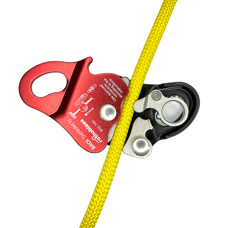 przyrzad autoasekuracyjny BACK Rotho zainstalowany na linie asekuracyjnej