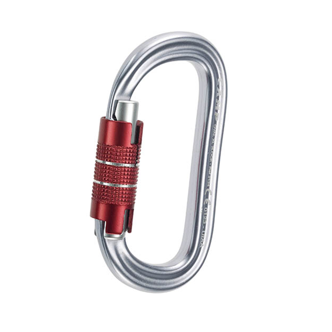 karabinek o owalnym kształcie, alumiony z czerwonym zamkiem typu twist lock marki Camp 2lock