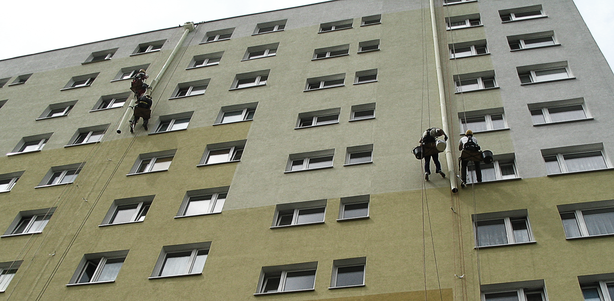 prace wykonywane z wykorzytaniem technik linowych przy montazu rynien