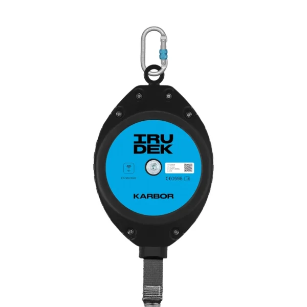 Urządzenie samohamowne Irudek Karbor o długości 6 metrów wyposażone jest w wytrzymałą taśmę poliestrową oraz solidną obudowę z tworzywa sztucznego. To urządzenie przeznaczone do pracy w pionie spełnia wymogi normy EN 360, zapewniając bezpieczeństwo podczas pracy na wysokości jednej osobie.