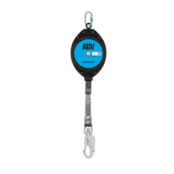 Urządzenie samohamowne Irudek Karbor 6 m wyróżnia się wytrzymałą obudową z tworzywa sztucznego, która gwarantuje odporność na trudne warunki pracy. Na szczycie obudowy znajduje się obrotowy ring do instalacji produktu za pomocą dołączonego zakręcanego karabinek STEELSAFE 981 o prześwicie 18 mm. Obrotowy element umożliwia swobodne obracanie urządzenia, dzięki temu Karbor utrzymuje właściwą pozycję podczas użytkowania, co zapobiega skręcaniu taśmy.
