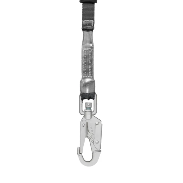 Urządzenie łączy się z użytkownikiem za pomocą 25 mm taśmy poliestrowej, zakończonej zatrzaśnikiem STEELSAFE 976 z wbudowanym identyfikatorem upadku. W przypadku upadku sygnalizator zmienia kolor z zielonego na czerwony, wskazując konieczność wymiany sprzętu.