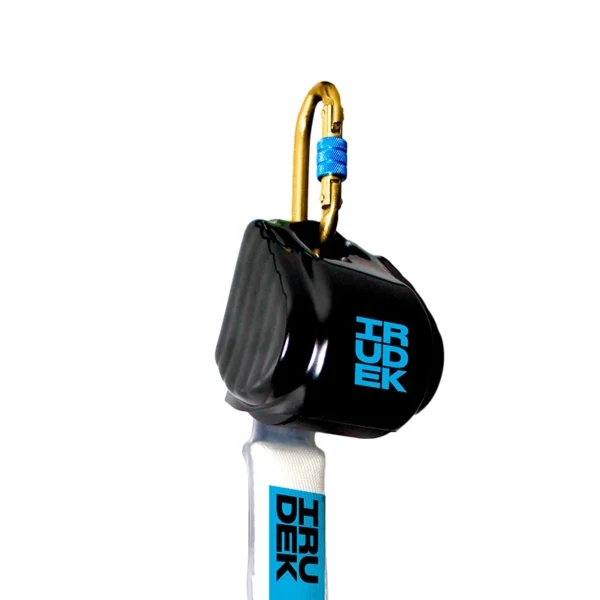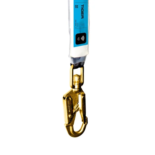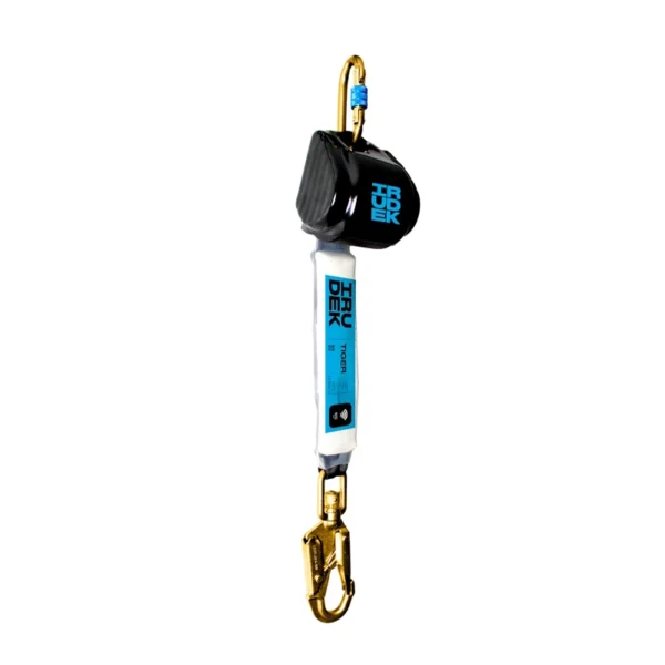 Irudek Tiger 2,5 m wyposażono od strony pracownika w automatyczny zatrzaśnik STEELSAFE 976 z wbudowanym identyfikatorem odpadnięcia (zielona tuleja, która pod wpływem odpadnięcia zmienia kolor na czerwony informując o potrzebie wycofania urządzenia). Karabinek STEELSAFE 976 jest obrotowy, dzięki czemu minimalizuje szanse na splątanie taśmy. Stalowy zakręcany karabinek STEELSAFE 981, pozwala na montaż do punktu kotwiczenia.